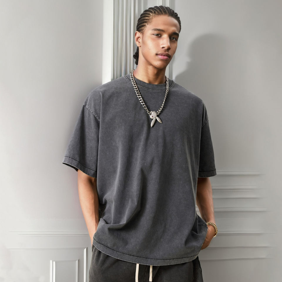 เสื้อยืดสกรีนลายตามสั่ง270GSM สำหรับผู้ชายเสื้อแนวสตรีทผ้าคอตตอน100% ลายกราฟิกทรงโอเวอร์ไซส์พิมพ์โลโก้