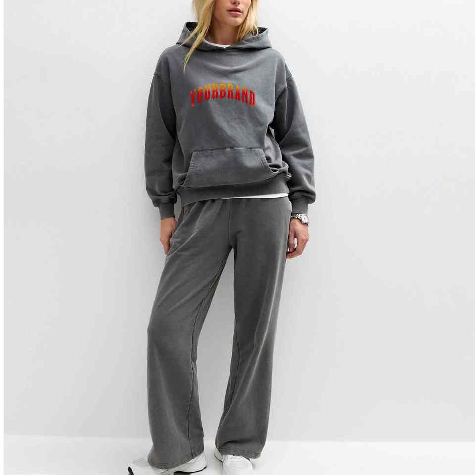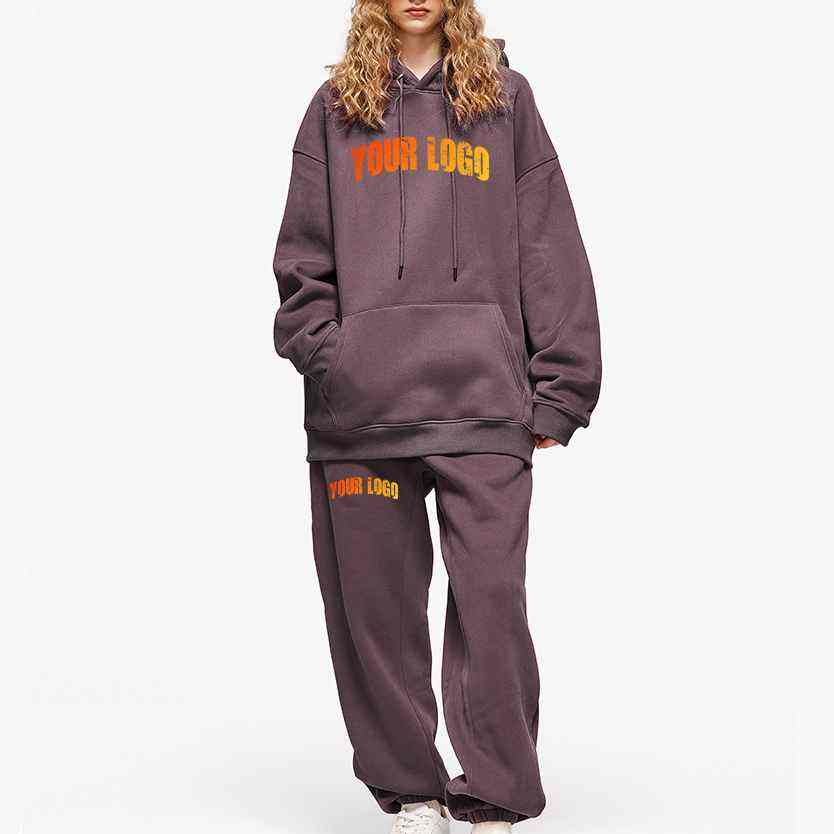 High Quality 2pcs Women Jogging Set Polyester/Cotton 280gsm Loose Fit Drop Shoulder Winter Solid Knee Casual Wear Tracksuit Set