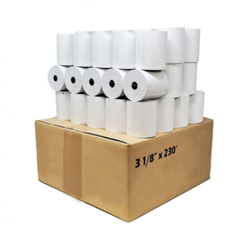 กระดาษความร้อนคุณภาพสูง3 1/8x230 45-80gsm ภาพสีดำกระดาษลงทะเบียนเงินสดแบบใช้ความร้อนสำหรับ POS ATM