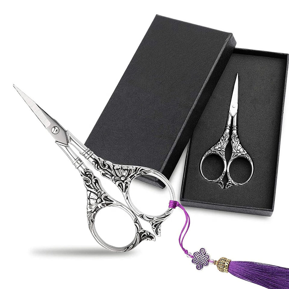 กรรไกรตัดเย็บคุณภาพสูง ขนาด 3.5 นิ้ว ทำจากสแตนเลส สำหรับงานปักลาย ปลายแหลมคม ใช้ในงานอุตสาหกรรมและงาน DIY พร้อมกล่องเก็บ