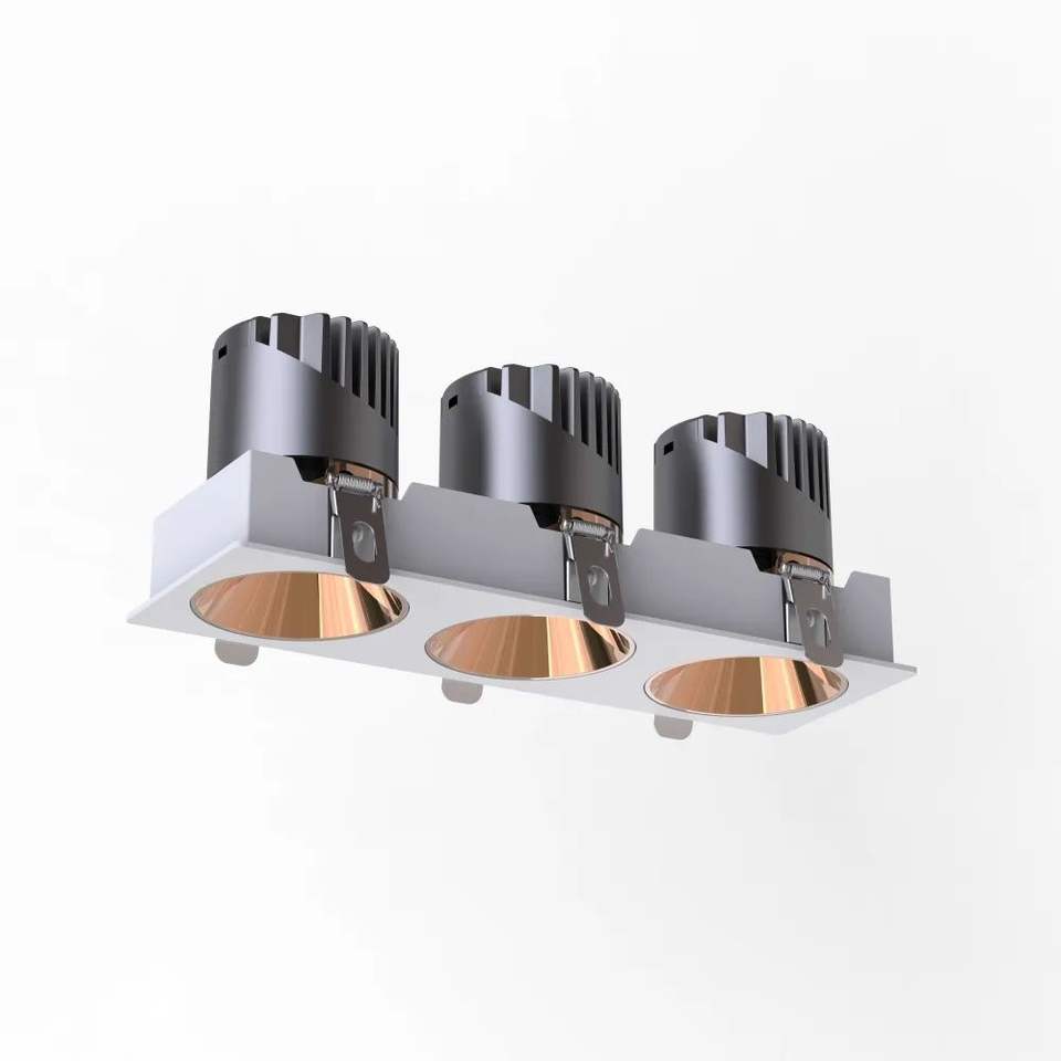 สปอตไลท์3หัวทรงสี่เหลี่ยมผืนผ้าตะแกรงกันแสงสะท้อนสปอตไลท์แบบโมเดิร์นโคมดาวน์ไลท์สำหรับใช้ในร่มอลูมิเนียม