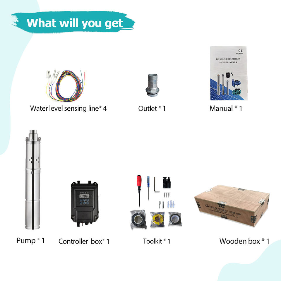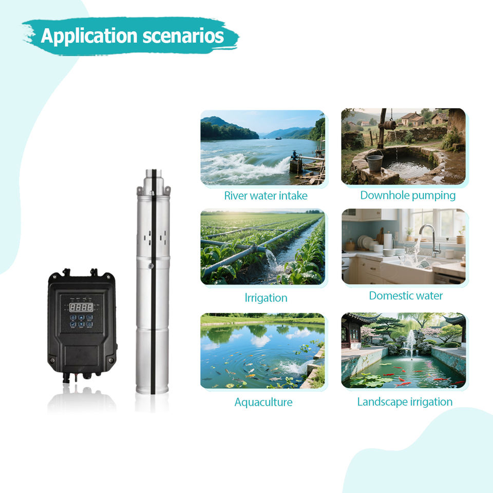 ปั๊มน้ำบ่อลึกพลังงานแสงอาทิตย์แรงดันไฟฟ้า3นิ้ว48โวลต์140เมตรปั๊มน้ำลึกแบบสกรูต่ำสำหรับกำจัดน้ำ