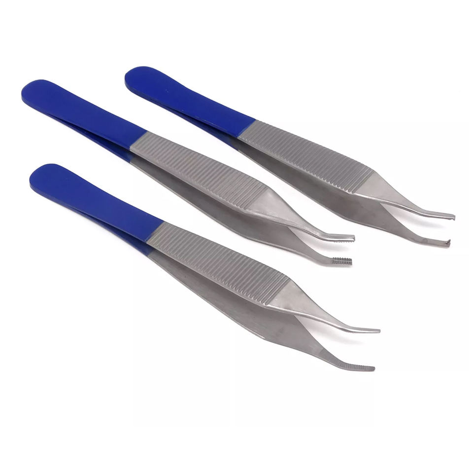 คีมหนีบเนื้อเยื่อ Adson 3ชิ้นตัวชี้วัดนิ้วสำหรับการผ่าตัดพลาสติก1X2ฟัน