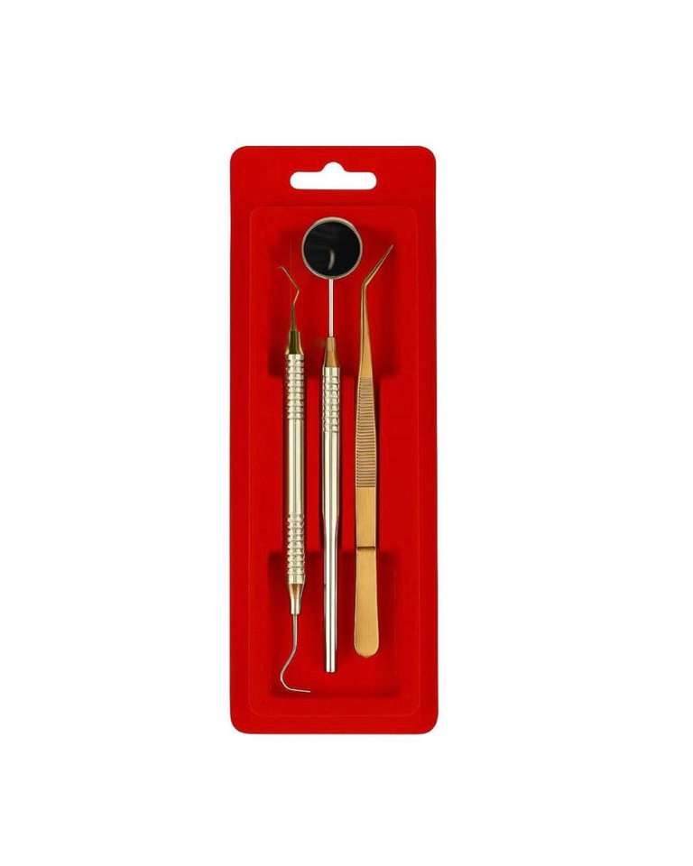 ชุดประกอบด้วย:คีมหนีบปากคีบฟันแบบ1x เครื่องมือสำรวจ1x กระจกส่องฟันแบบ1x