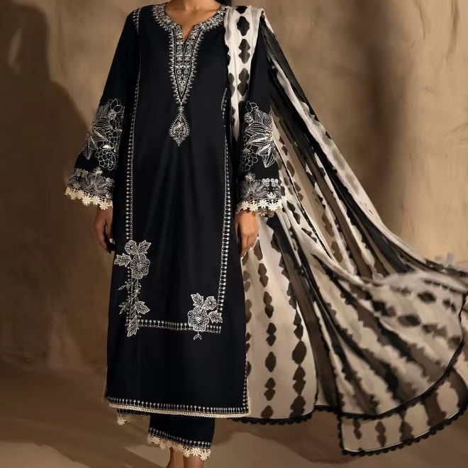 ชุดเดรสซาลวาร์คาเมซทำจากผ้าลินินพิมพ์ลายแบบไม่มีตะเข็บน้ำหนักเบาชุดงานปาร์ตี้มาใหม่