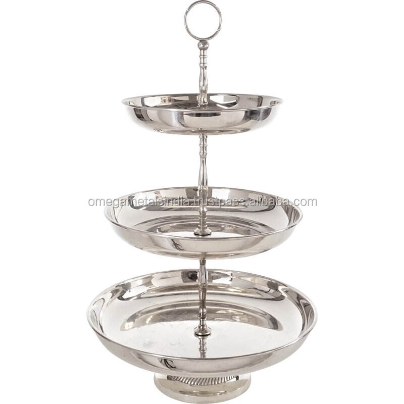 ชั้นวางเค้กโลหะ 3 ชั้น คุณภาพสูง | ที่วางคัพเค้กสีเงิน | ขาตั้งขนมแบบทนความร้อนสูง 55 ซม. สำหรับงานปาร์ตี้และงานอีเว้นท์