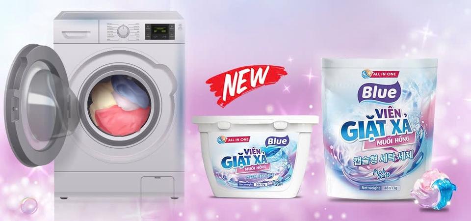 ผงซักฟอกดอกไม้สีฟ้าแบบ3อิน1จากเวียดนามสำหรับการซักเครื่องแต่งกายจากเวียดนาม