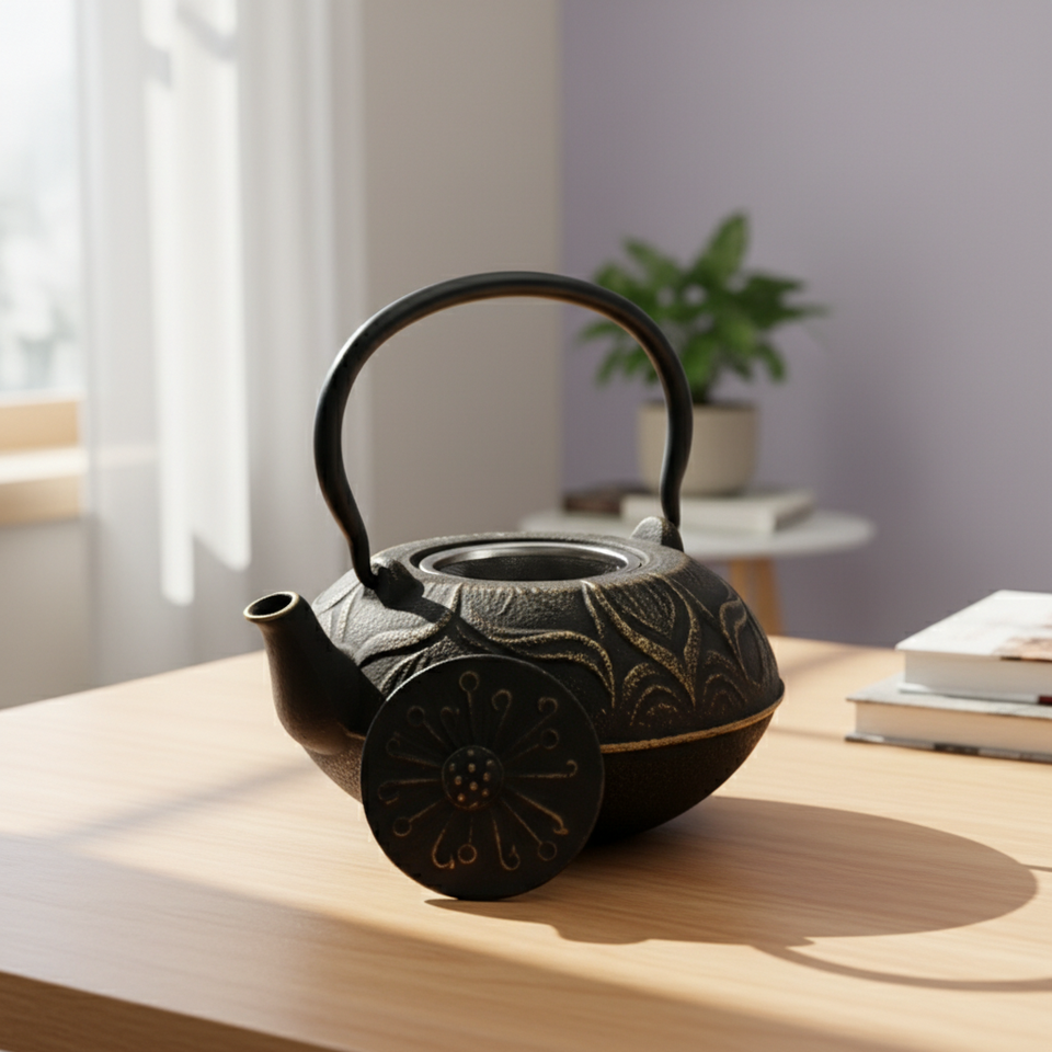 กาน้ำชาเหล็กหล่อคุณภาพสูง 3008894-1.1 รักษาความร้อนได้ดีเยี่ยม ความจุ 1.1 ลิตร ด้ามจับเหล็กหล่อ สไตล์ญี่ปุ่น เคลือบอีนาเมล