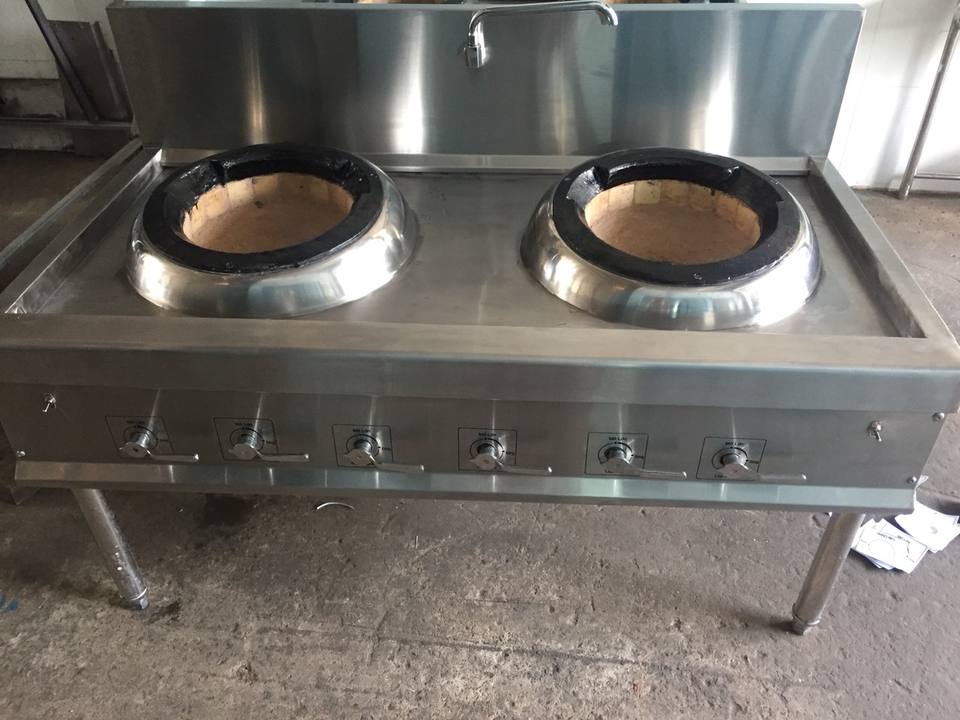 High Quality 304 Stainless Steel 2-Burner Gas Wok Range 1.0mm Thick with 1-Year Warranty Made in Vietnam for Kitchen Use