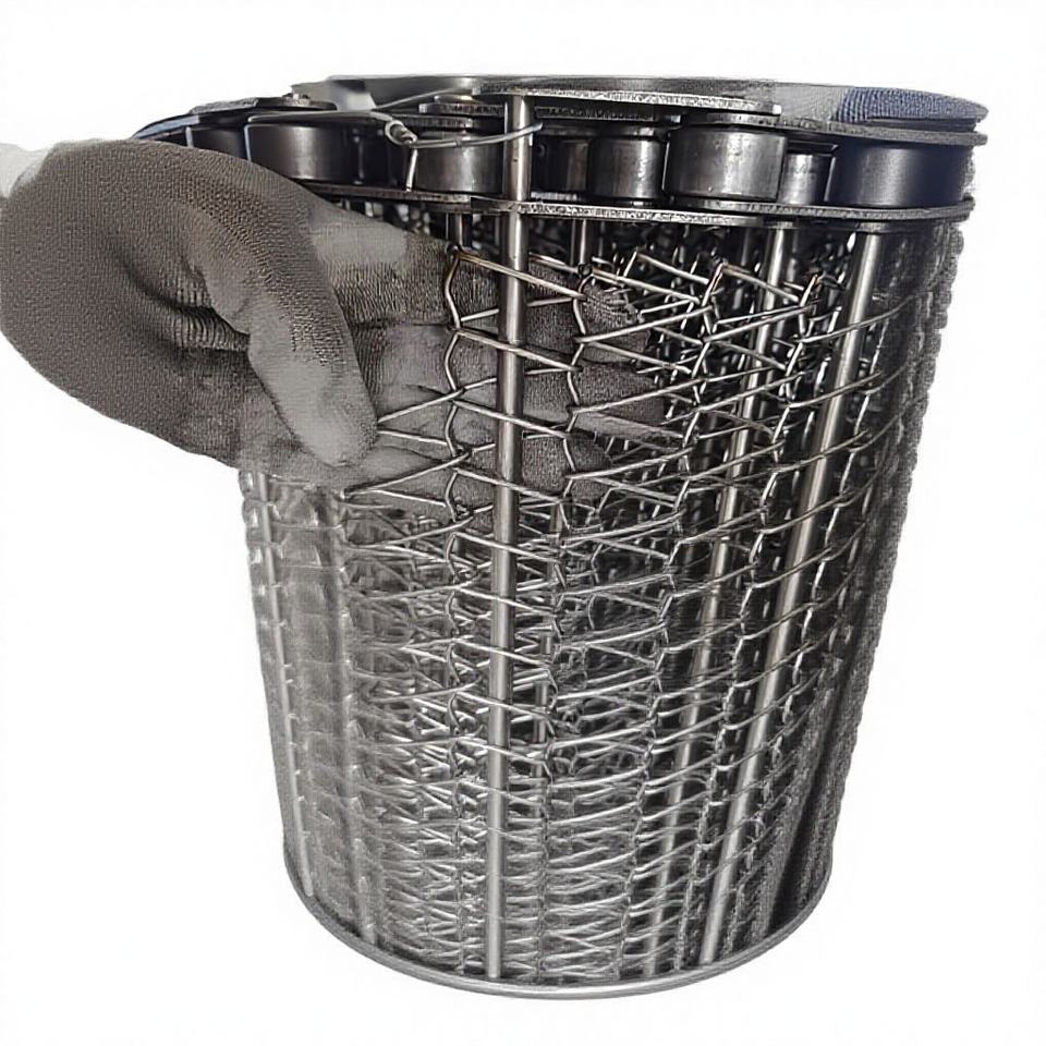 รูปร่าง:สายพานลำเลียงแบบตาข่ายลูกโซ่, ลายข้าวหลามตัด, แบบผ้ากันเปื้อน, สายพานตาข่ายทรงกลม