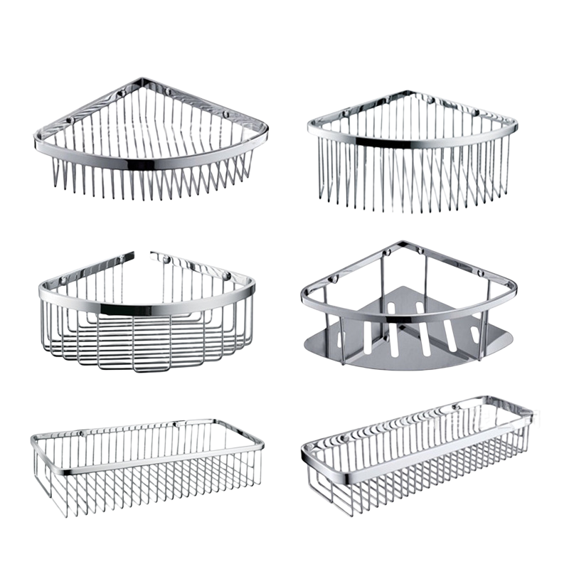ชั้นวางของเข้ามุมในห้องน้ำชั้นสแตนเลสแบบไม่ต้องเจาะชั้น304