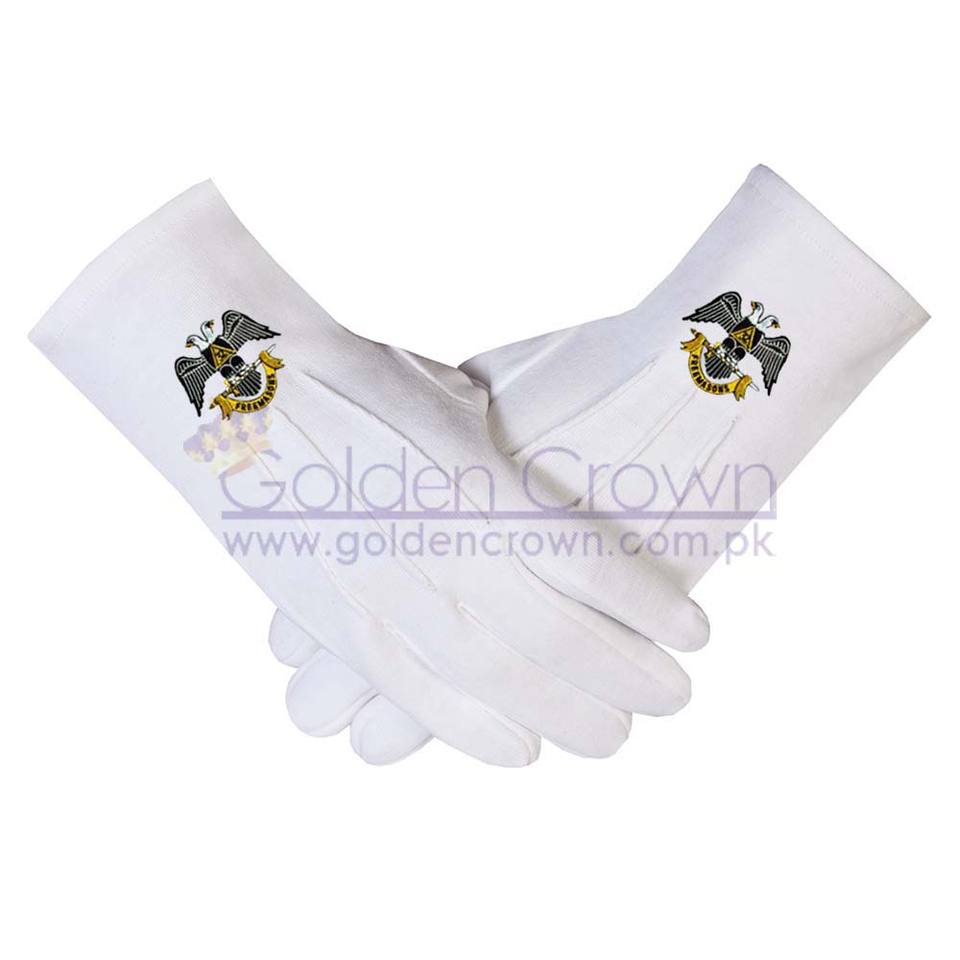 High Quality 32 DEGREE WINGS Down & SCOTTISH RITE MASONIC EMBROIDERED GLOVES | Masonic Parade Gloves Supplier