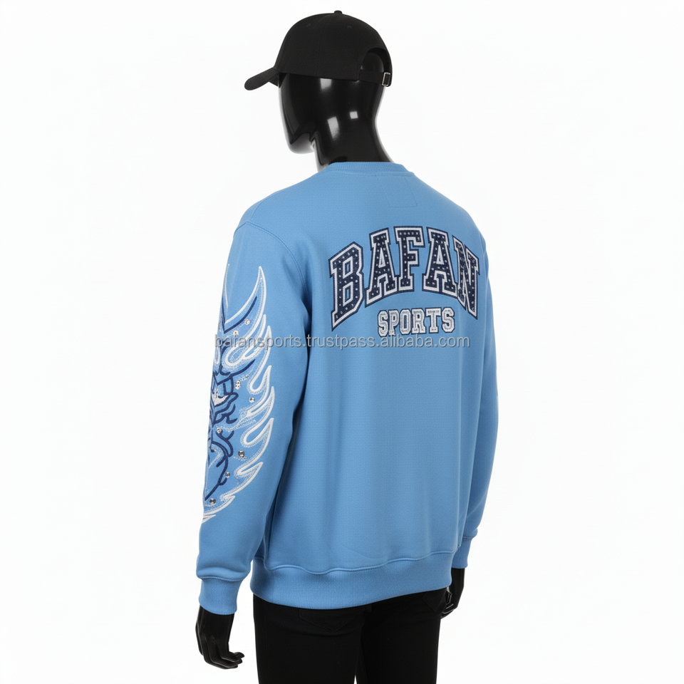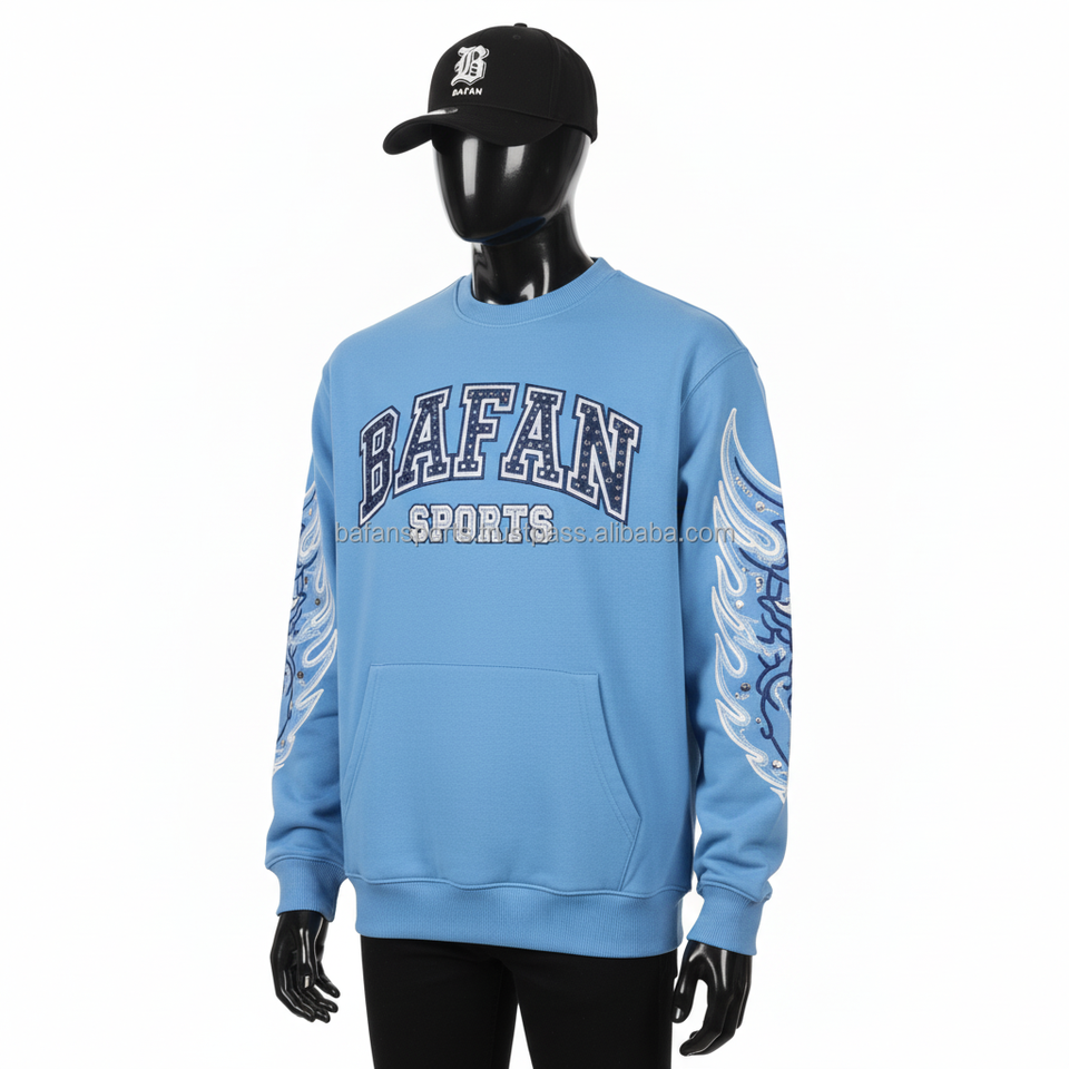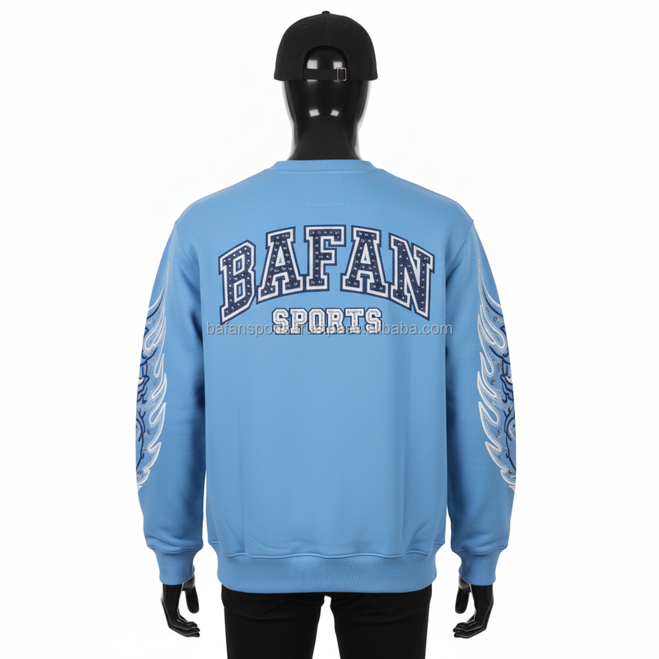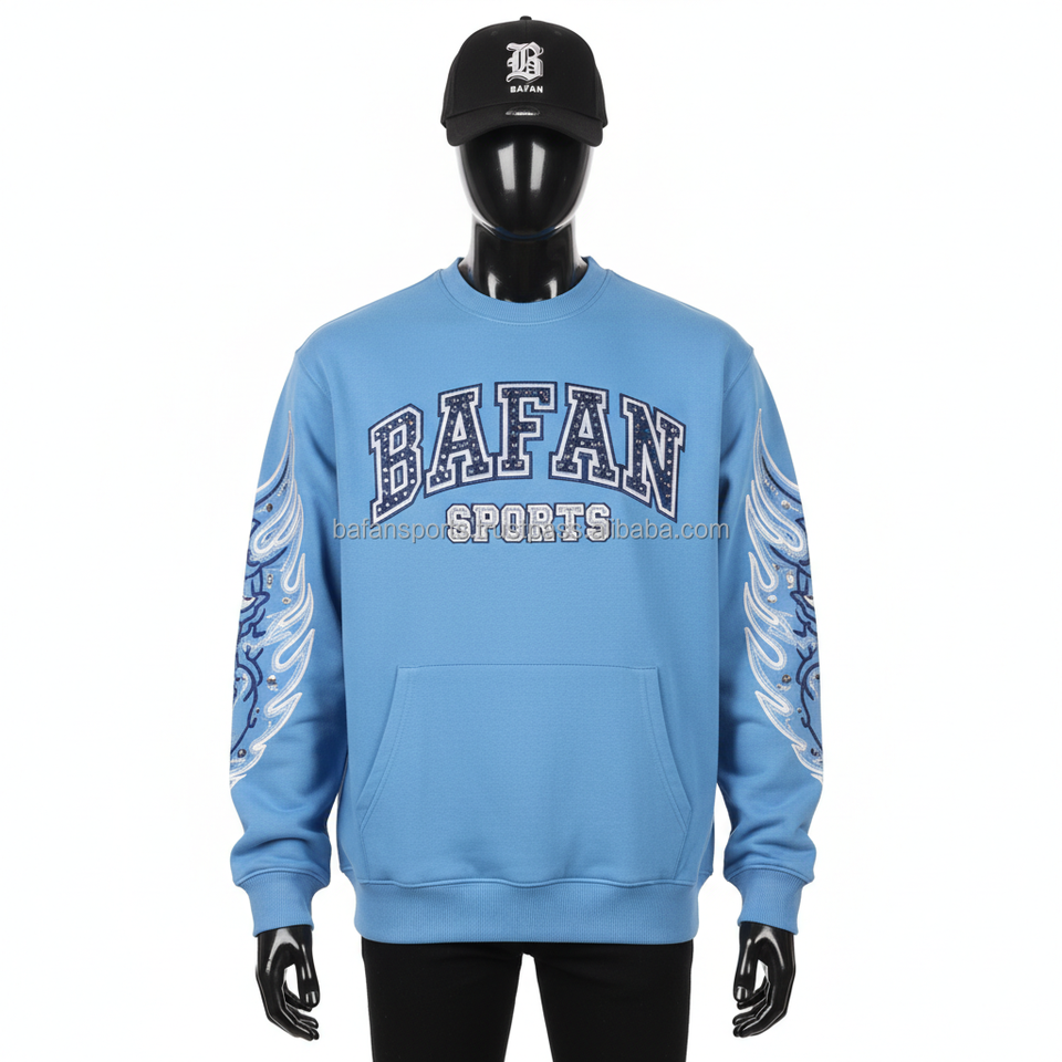 เสื้อกันหนาวผ้าฝ้าย320 GSM ผ้าฟลีซโพลีเอสเตอร์สำหรับผู้ชายสีฟ้าปักโลโก้ได้ตามต้องการ