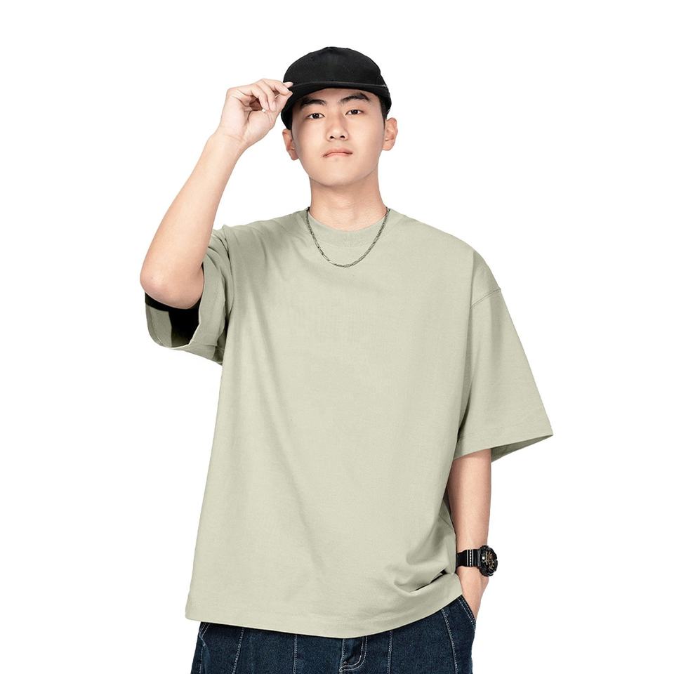 High Quality 320gsm 100% Cotton Heavyweight Oversized Drop Shoulder Casual Solid Blank Short Sleeve Crew Neck T-shirt For Men