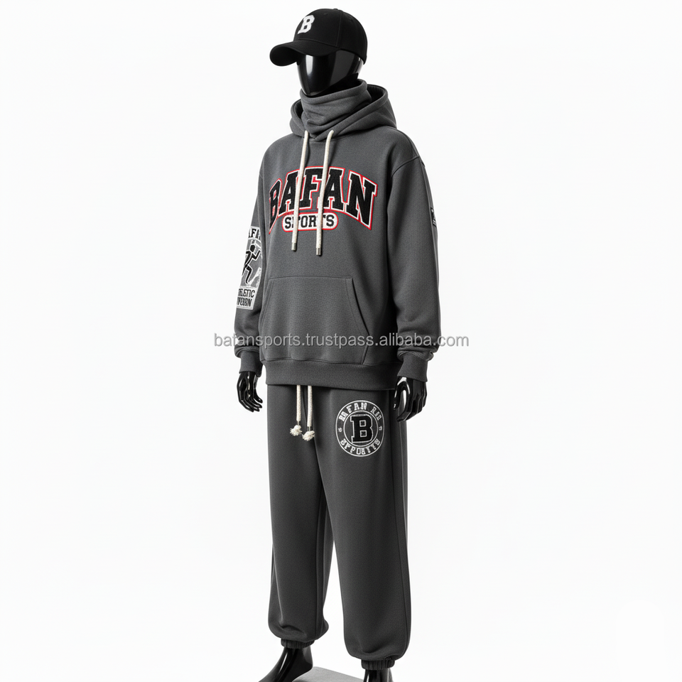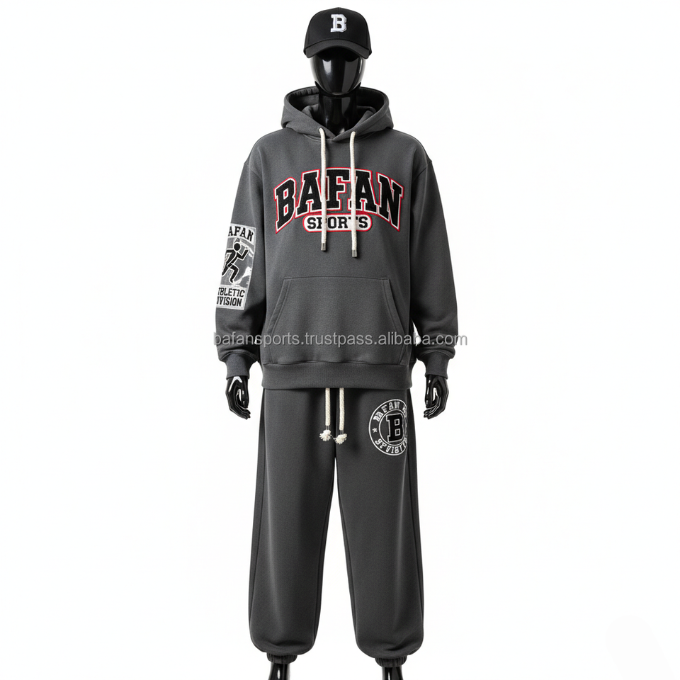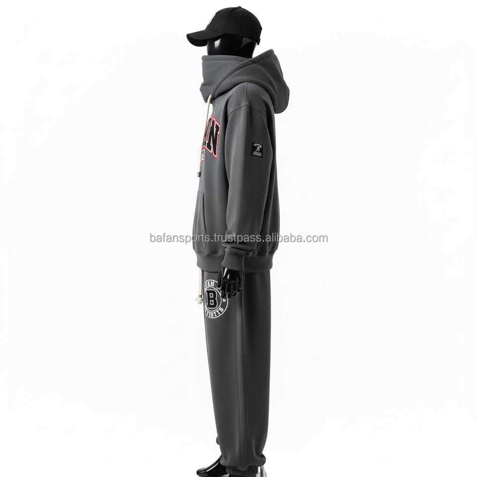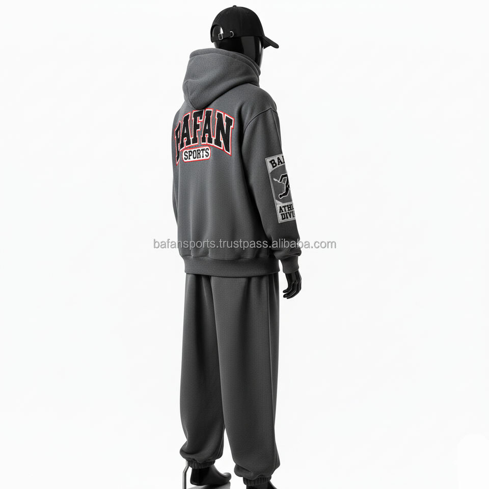 330 GSM ชุดวอร์มสำหรับผู้ชายชุดวอร์มผ้าขนแกะสีเทาเข้มพิมพ์โลโก้ได้ตามต้องการ