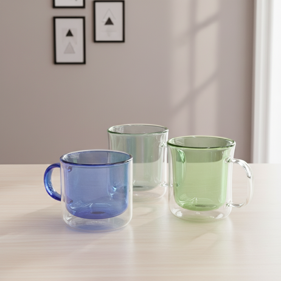 แก้วน้ำคุณภาพสูง 3306338-0.33 ขนาด 330 มล. ผนังสองชั้น ทำจากแก้วบอโรซิลิเกต สำหรับเครื่องดื่มร้อน/เย็น