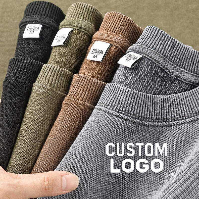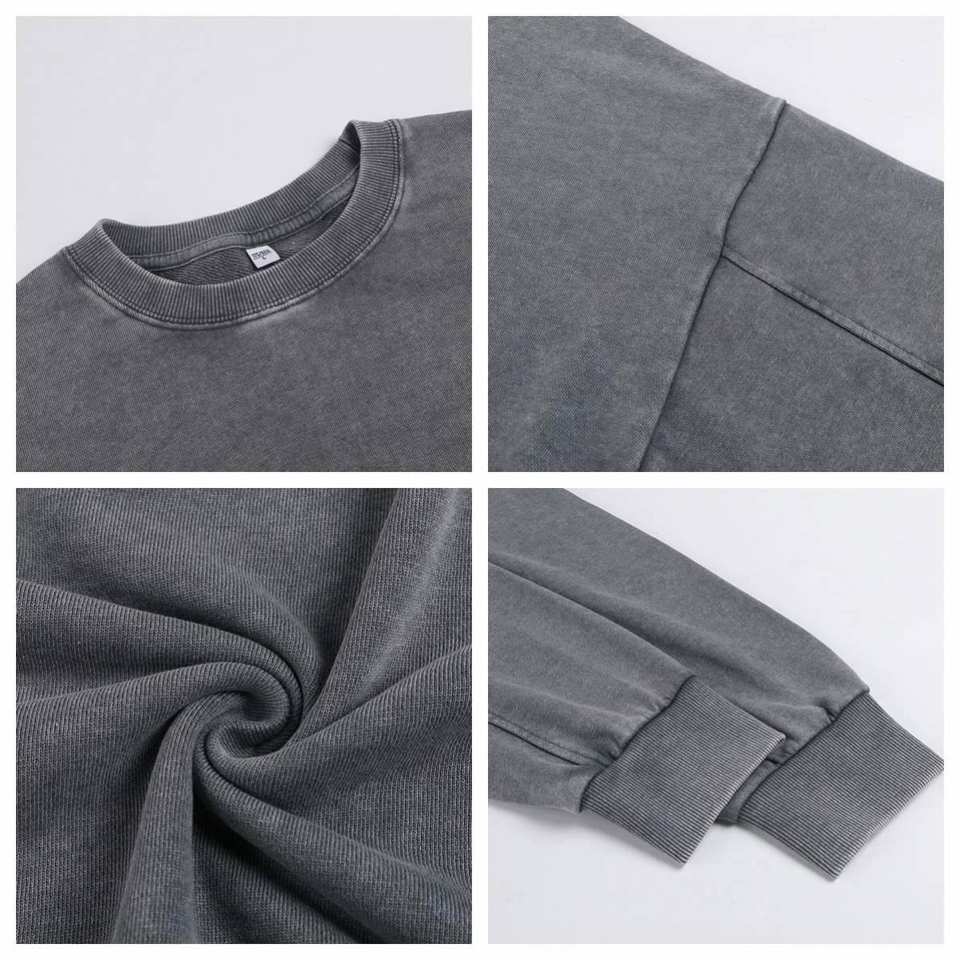 เสื้อยืดแขนยาวคุณภาพสูง 350GSM ผ้าคอตตอนทรงเข้ารูป ล้างสีแบบ Acid Wash สกรีนโลโก้ตามสั่ง เสื้อฮู้ดดี้ผู้ชายแบบสั่งทำ