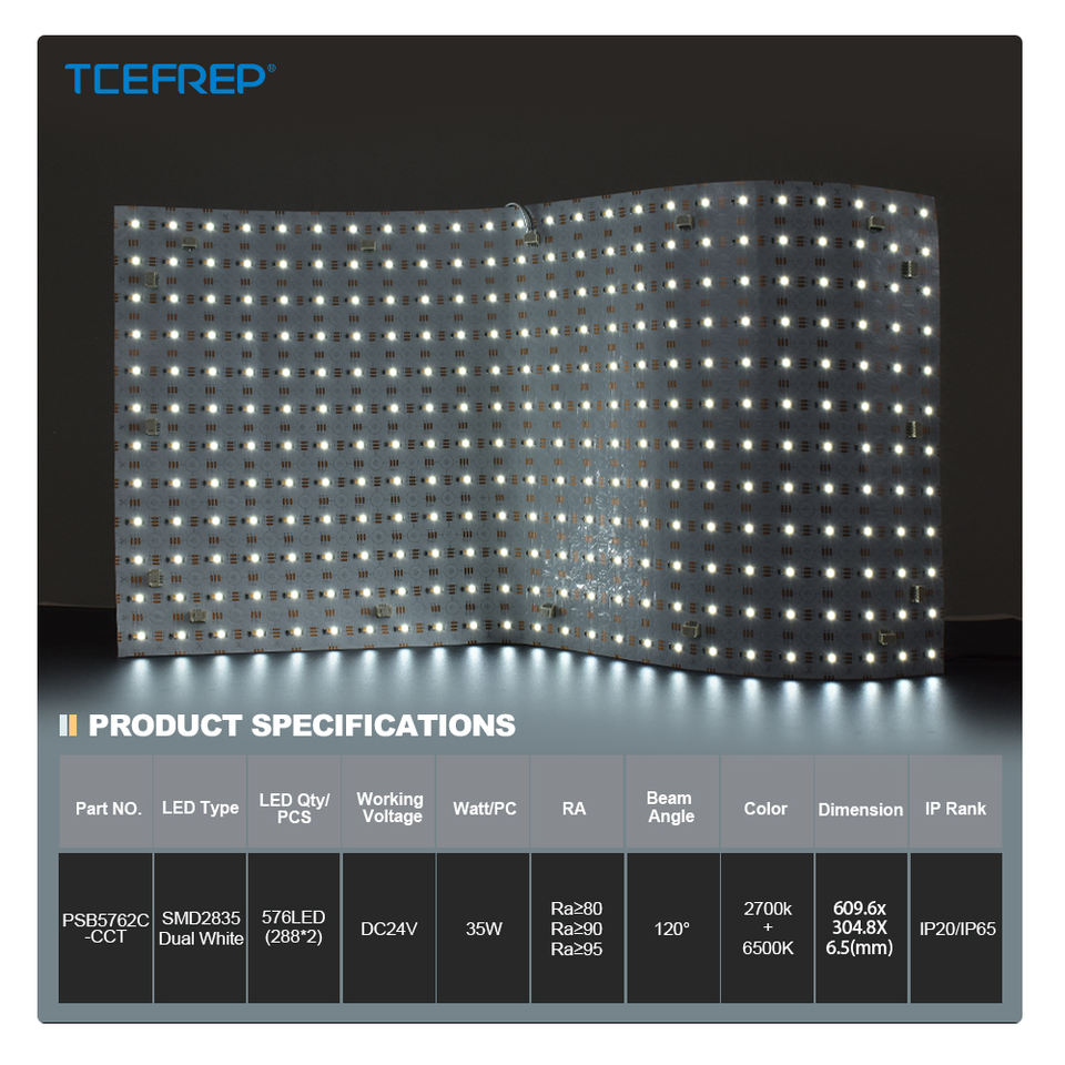 แผงไฟ LED คุณภาพสูง 35W แบบยืดหยุ่น แสงขาวคู่ CCT พร้อมหลอด LED 578 ดวง กันน้ำระดับ IP65 สำหรับงานสถาปัตยกรรมและไฟส่องหิน
