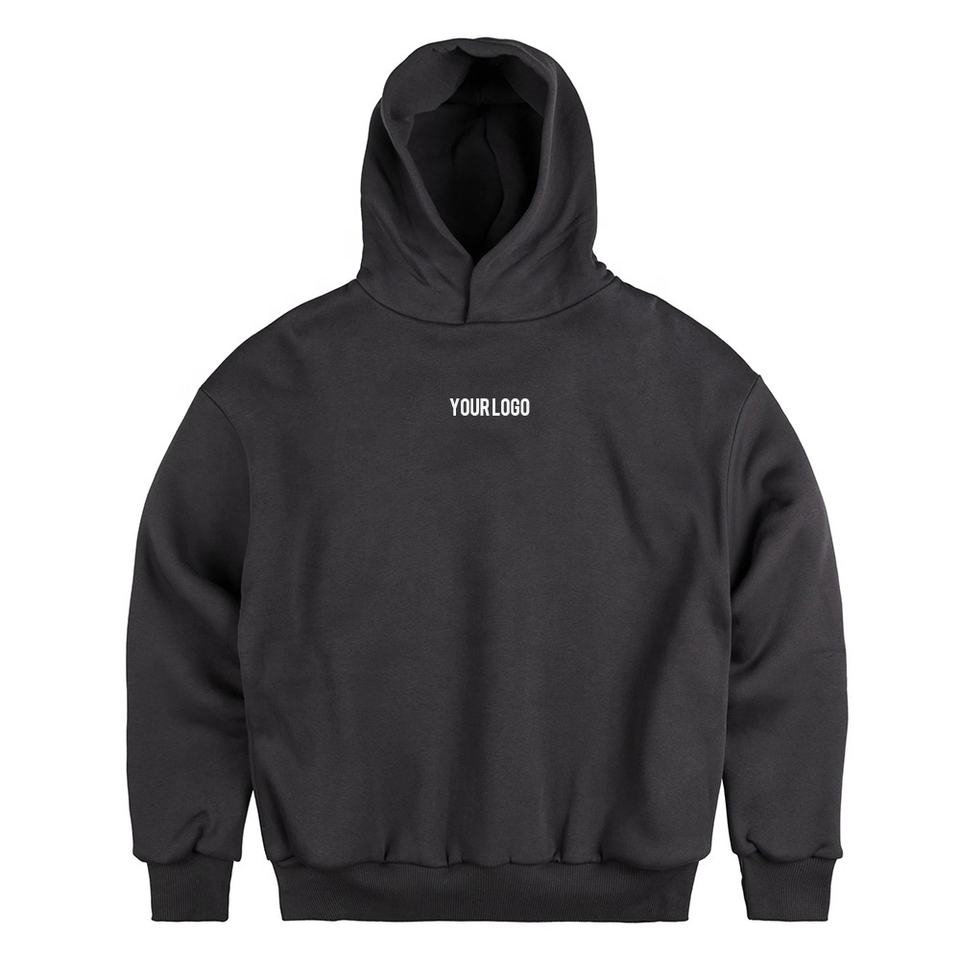 เสื้อฮู้ดดี้ผ้าฝ้ายฟลีซคุณภาพสูง 380gsm สำหรับฤดูหนาว แบบเรียบ ปักลาย ทรงหลวม กระเป๋าซ่อน สำหรับผู้ชาย ใส่เที่ยวข้างนอก