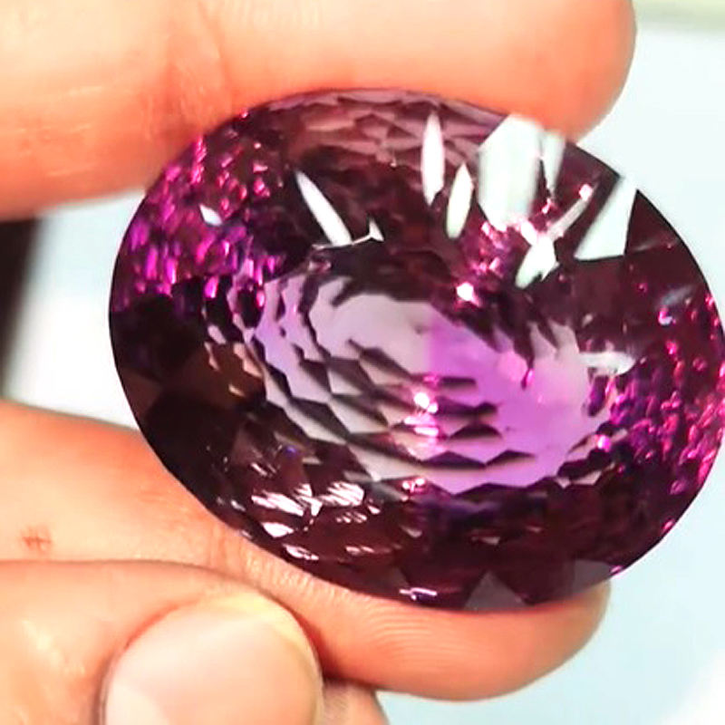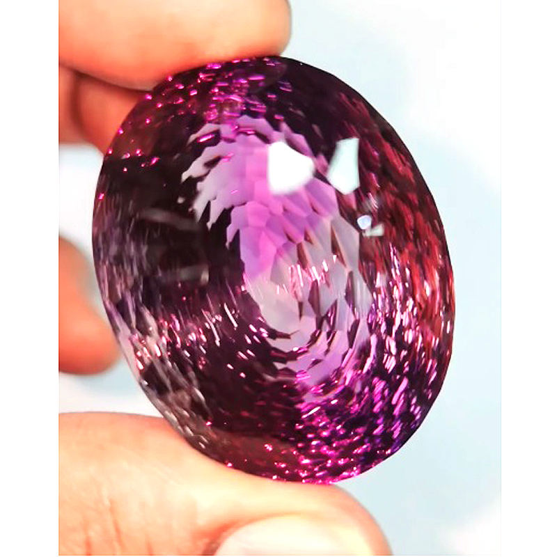 พลอยอเมทิสต์บราซิลตัดด้วยเลเซอร์รูปไข่38มม. อัญมณีหลวมๆ132ชิ้นจากธรรมชาติ