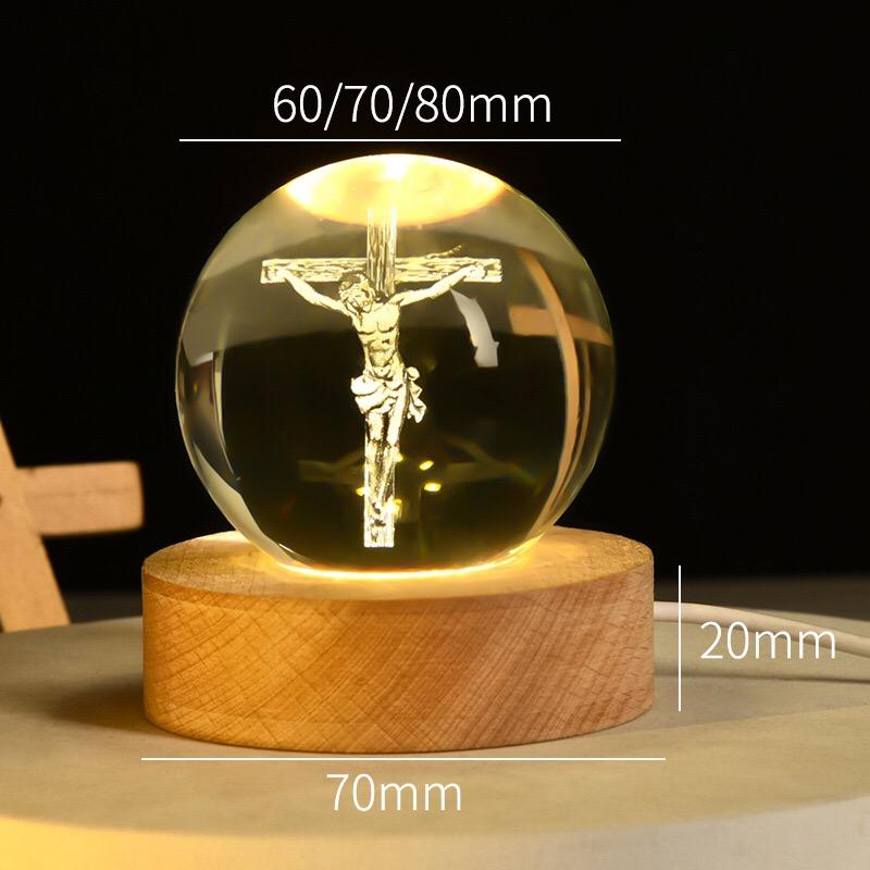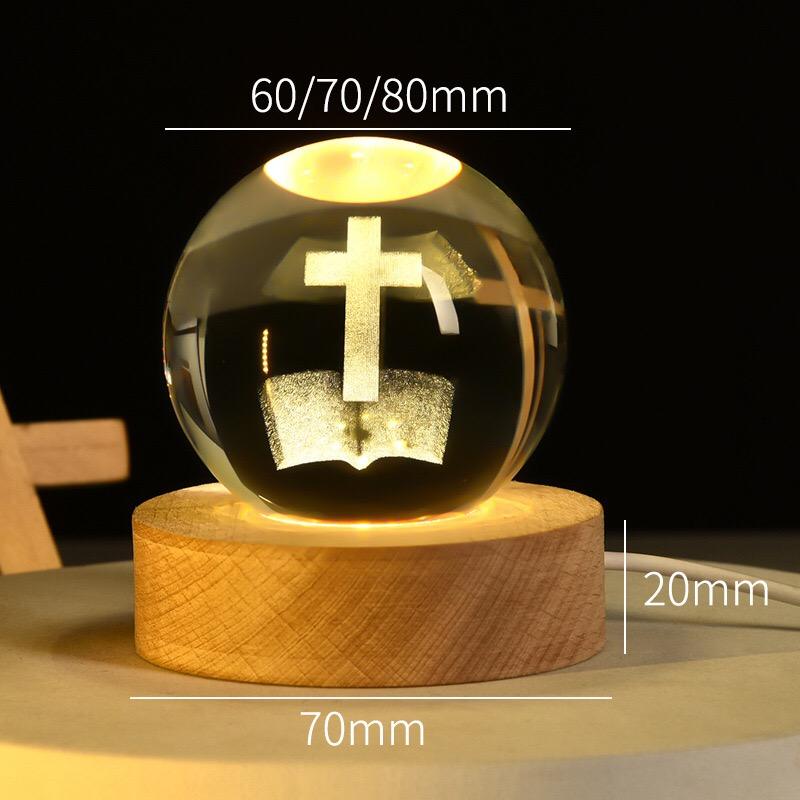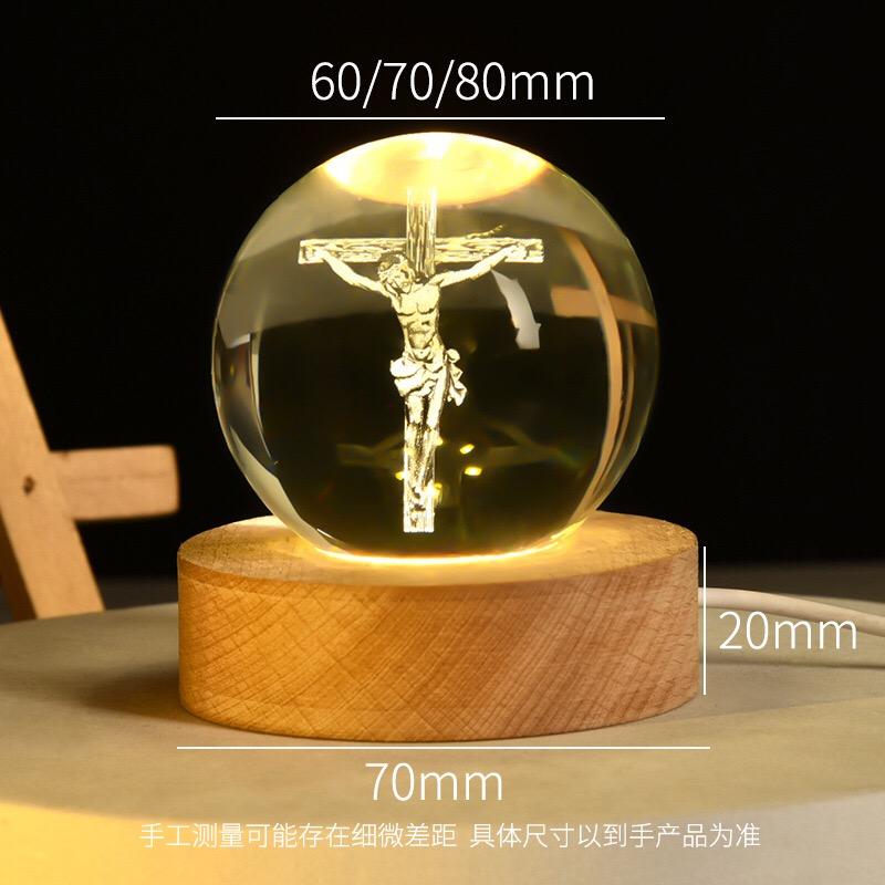 ไฟกลางคืนประดับด้วยเลเซอร์ลูกบอลคริสตัล3D ของขวัญทางศาสนาของชาวคริสต์โคมไฟยูวีประดับตกแต่งคริสต์มาสโคมไฟกลางคืน