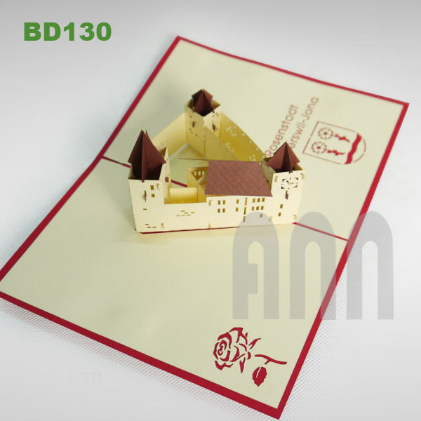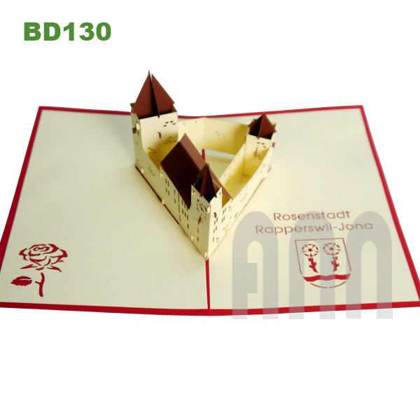 การ์ดอวยพรกระดาษญี่ปุ่น 3 มิติ งานแฮนด์เมดคุณภาพสูง ลายอาคาร Schloss Rapperswill พร้อมลายนูน ปั๊มร้อน ของที่ระลึก ANN