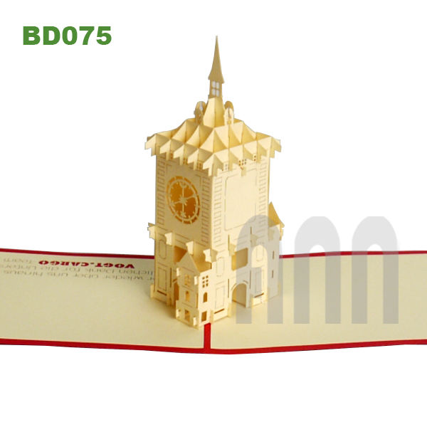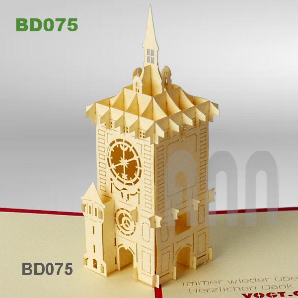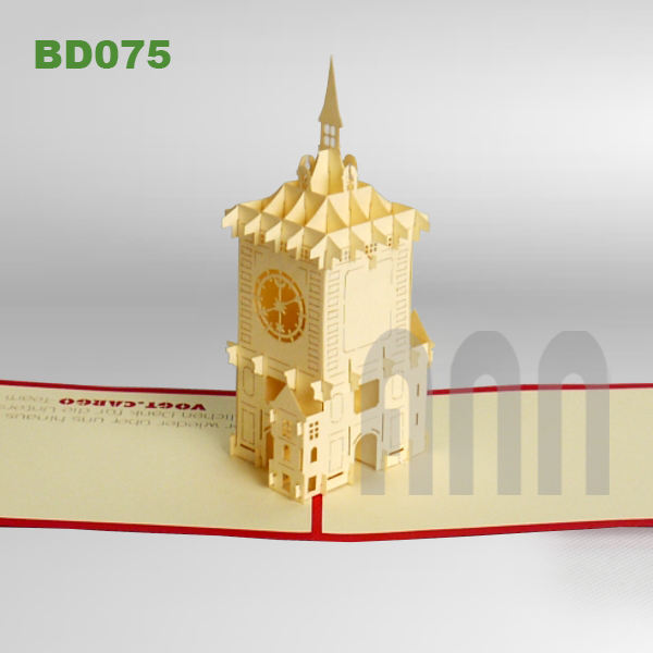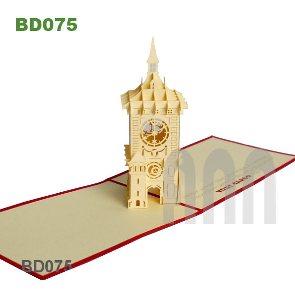 การ์ดอวยพรตกแต่งวันขอบคุณพระเจ้า รูปแบบ 3 มิติ คุณภาพสูง ทำมือ ตัดกระดาษ รูปหอนาฬิกาเบิร์น พร้อมภาพวิวญี่ปุ่น