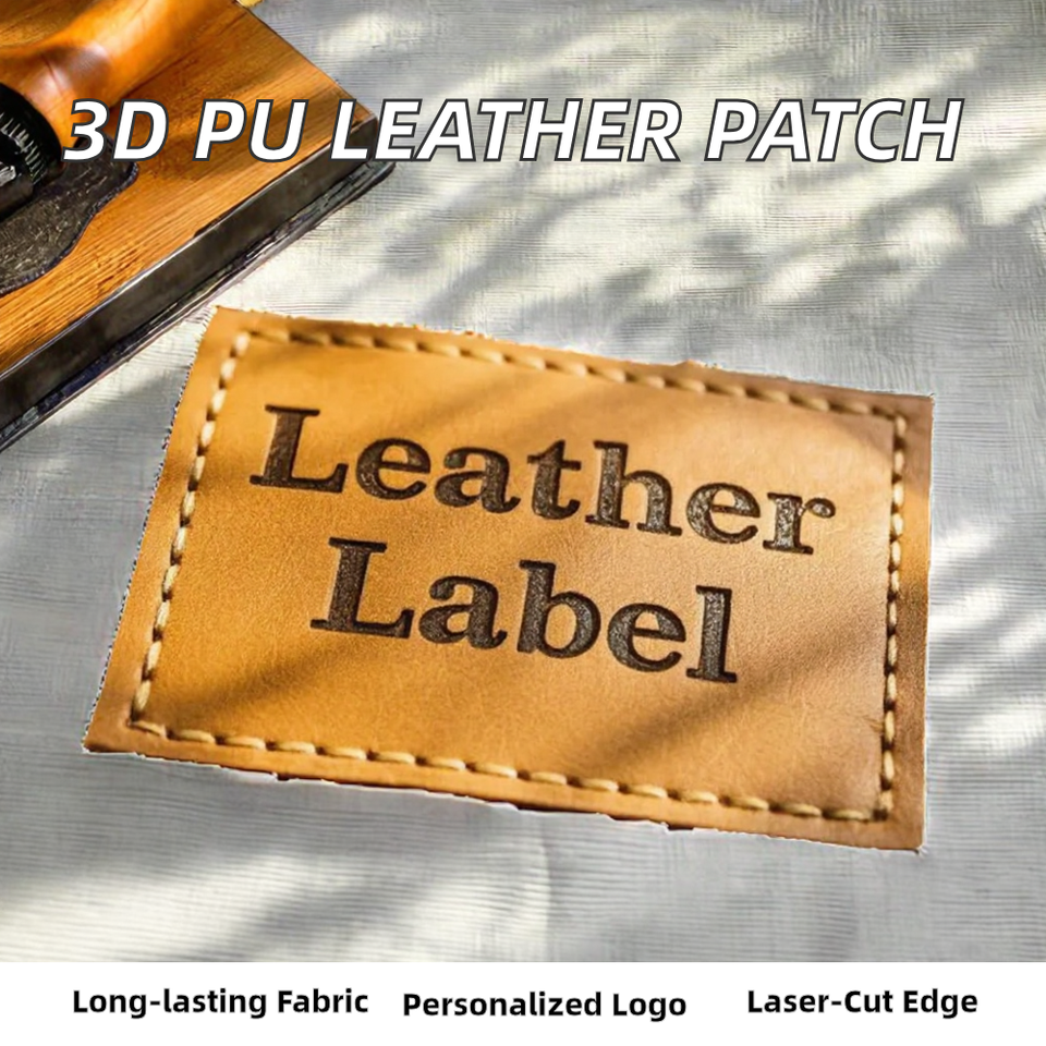 High Quality 3D PU Leather Patch Custom Logo Eco-Friendly No Fold Embossed Labels Roll Laser Cut Edge Fashionable Design Bags