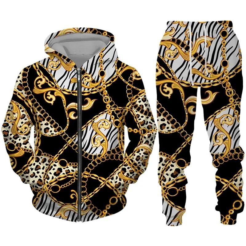 High Quality 3D Print Men's Zipper Tracksuit Set Casual Hoodie Pants 2PCs Sets Oversized Sweatshirt Fashion Men Clothes