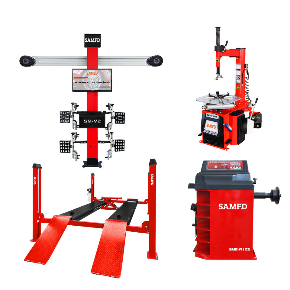 เครื่องตั้งศูนย์ล้อ 3 มิติ คุณภาพสูง พร้อมลิฟท์ 4 เสา เครื่องถอดยาง และเครื่องถ่วงล้อ ชุดเต็ม