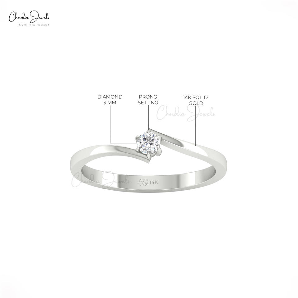 แหวนเพชรเม็ดเดี่ยวสีขาวตัดขนาด3มม. 14K สีเหลืองทองแฮนด์เมดงานแต่งงานงานเลี้ยงวันครบรอบ