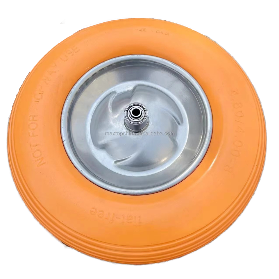 ล้อโฟม PU คุณภาพสูง 4.00-8 แบบไม่มียางใน พร้อมขอบโลหะและลูกปืน สำหรับรถเข็นก่อสร้าง รถเข็นสวน รถลาก
