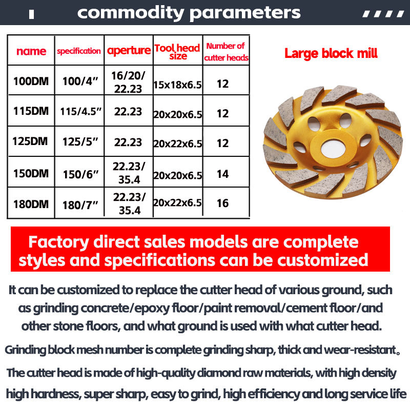 High Quality 4" 100mm Diamond Bowl Grinding Disc for Angle Grinder Thickened 6.5mm OEM Customizable Yumeda Brand