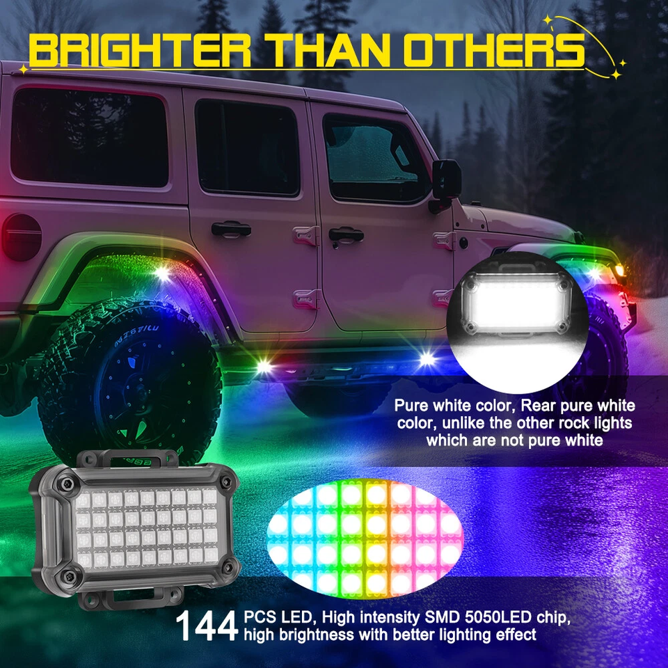 ไฟ LED คุณภาพสูง 4 6 8 12 ดวง เปลี่ยนสีได้ กันน้ำ กันกระแทก ไฟนีออน Ambient Trail Rig สำหรับรถ ATV UTV รถบรรทุก และรถออฟโรด
