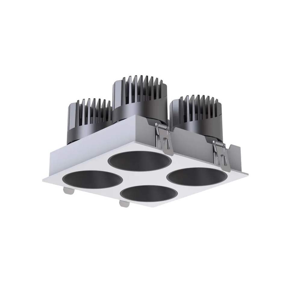 สปอตไลท์4หัวทรงสี่เหลี่ยมผืนผ้าตะแกรงกันแสงสะท้อนแบบทันสมัยไฟดาวน์ไลท์แบบ COB สำหรับใช้ภายในอาคารทำจากอลูมิเนียม