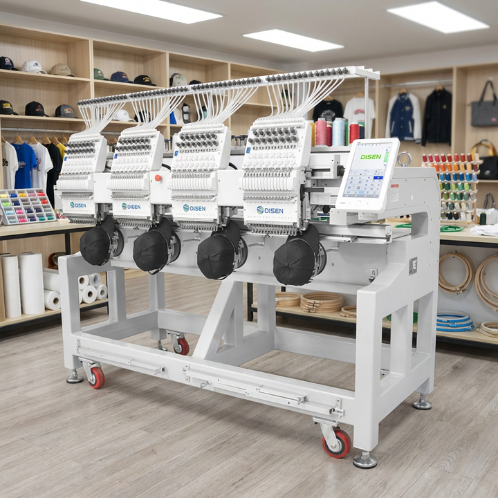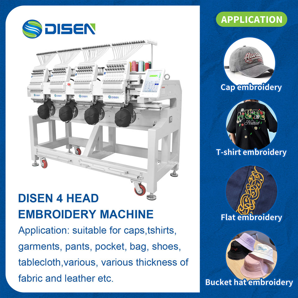 เครื่องปักคอมพิวเตอร์คุณภาพสูง 4 หัว 12/15 เข็ม สำหรับงานอุตสาหกรรมอัตโนมัติ สำหรับเสื้อยืด/งานปักแบบเรียบ/งานปักหมวก