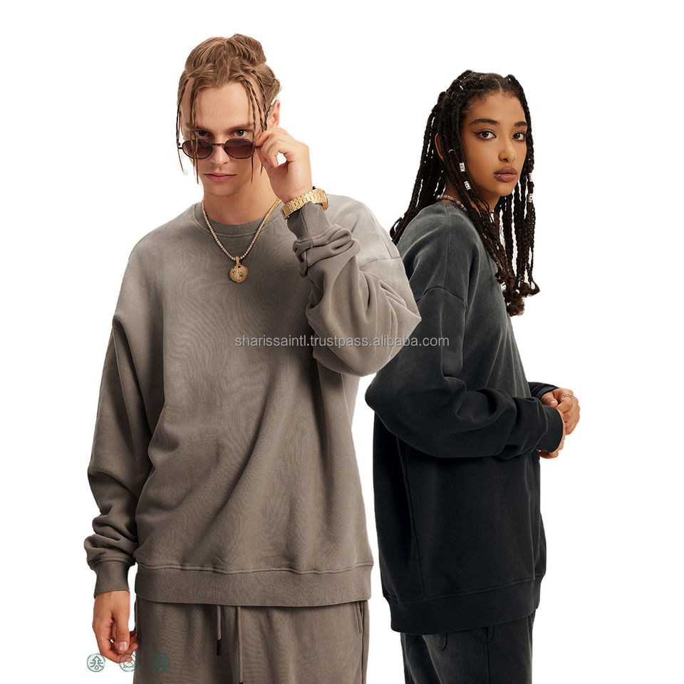 เสื้อสเวตเตอร์400 GSM Acid สำหรับผู้ชายเสื้อจั๊มเปอร์ลายพื้นไซส์ใหญ่พิเศษผ้าทอสำหรับฤดูหนาว