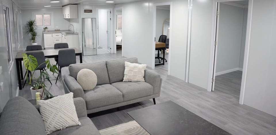 บ้านตู้คอนเทนเนอร์แบบขยายได้ปีกคู่แบบพกพาสำเร็จรูป40ft สำเร็จรูป