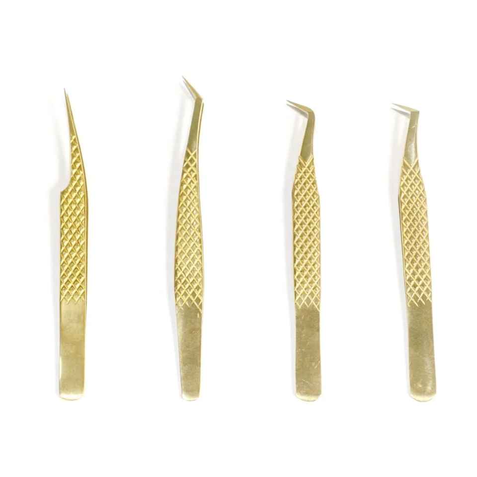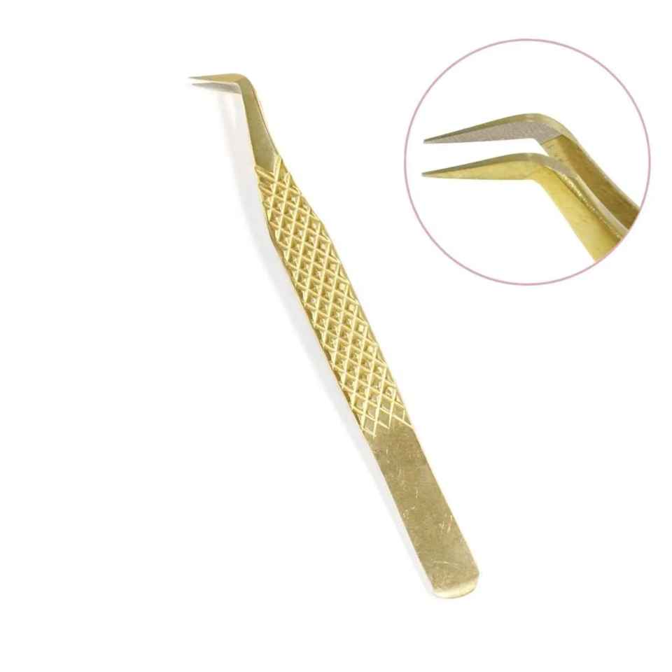 แหนบต่อขนตาสแตนเลสปลายแหลมอุปกรณ์ต่อขนตาสีทอง45 90องศาความแม่นยำสูงทนทาน