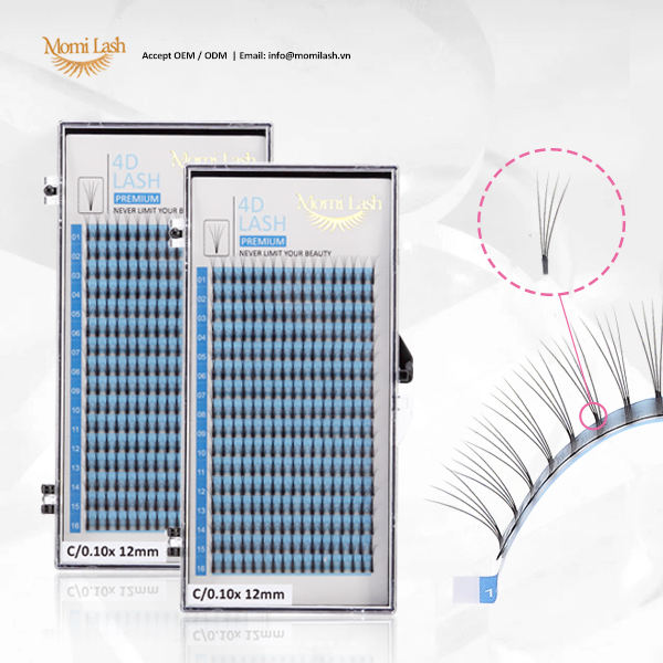 ขนตาปลอมทำจาก4D ขนตาปลอมทำมือแบบพัดพร้อมอุปกรณ์เสริมความงามแบบซีซีจำนวนมาก