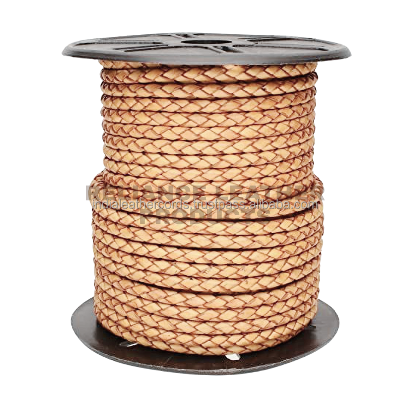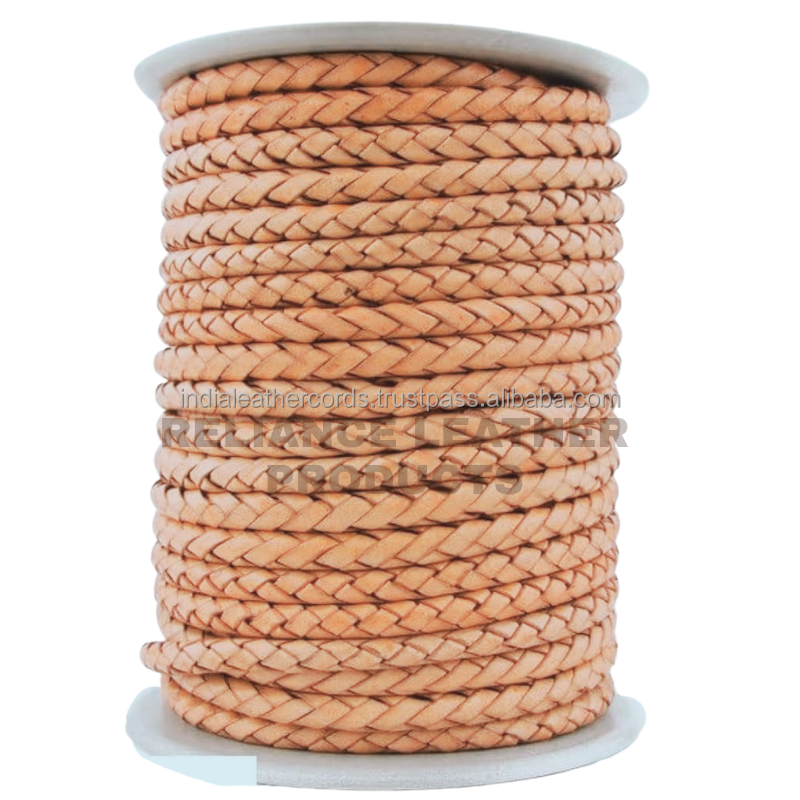 สายหนังถักโบโลคุณภาพสูงขนาด 4 มม. ผลิตจากหนังแท้จากอินเดีย เหมาะสำหรับงานทำเครื่องประดับมืออาชีพและงาน DIY ทันสมัย