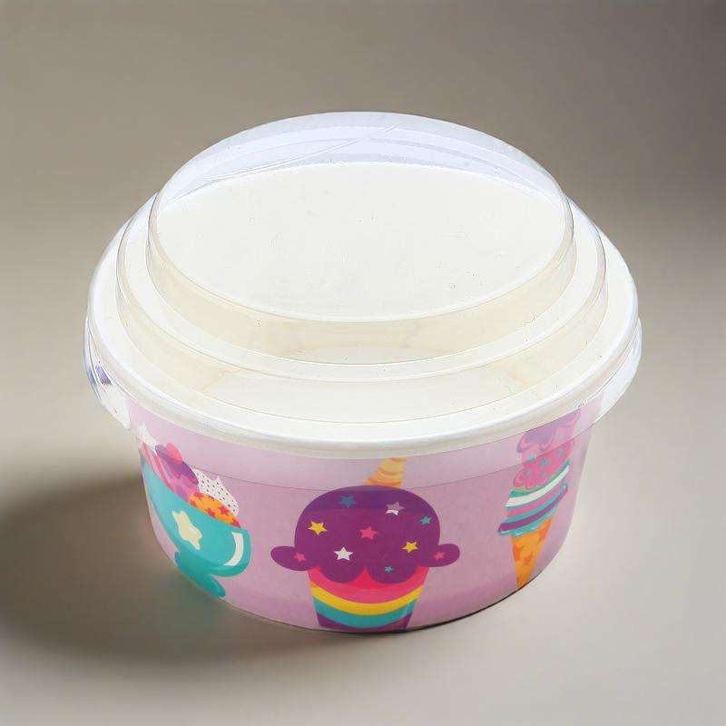 ถ้วยกระดาษเป็นมิตรต่อสิ่งแวดล้อมสำหรับเสิร์ฟไอศกรีมพิมพ์แบบกำหนดเอง