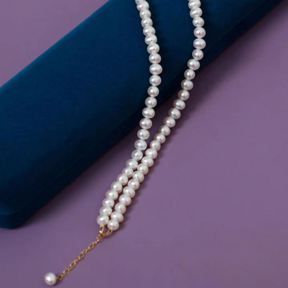 สร้อยคอมุกน้ำจืดทรงกลมคุณภาพสูง ขนาด 5-6 มม. สไตล์คลาสสิกและแข็งแรงแบบเฮปเบิร์น สร้อยคอแบบโชคเกอร์อเนกประสงค์