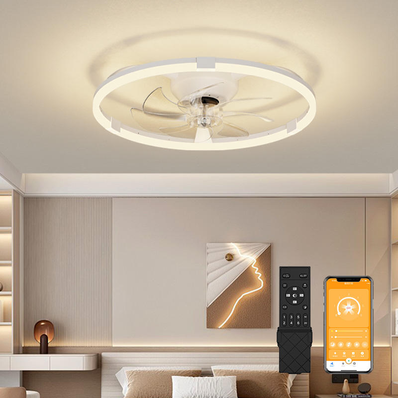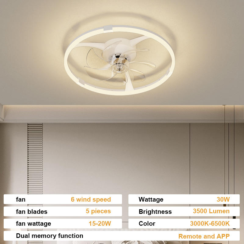 พัดลมเพดานคุณภาพสูง 5 ใบพัด ขนาด 20 นิ้ว 6 ระดับความเร็ว พร้อมไฟ LED ดีไซน์ทันสมัย เงียบ ใช้มอเตอร์ DC ควบคุมด้วยรีโมท ปรับความสว่างได้ ทนทาน ผลิตจากพลาสติก เหมาะสำหรับห้องนอน