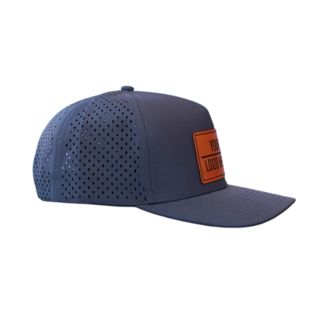 หมวกกีฬา5แผงกันน๊อคกันน้ำมีรูตัดด้วยเลเซอร์กันน้ำออกแบบโลโก้หนังได้ตามต้องการหมวกโรงงานเวียดนามขายส่ง