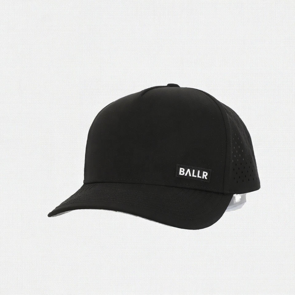 หมวกเบสบอลสำหรับผู้ชายหมวกเบสบอลผ้าโพลีเอสเตอร์สีดำมีรูตัดด้วยเลเซอร์สำหรับเล่นกีฬา5แผง