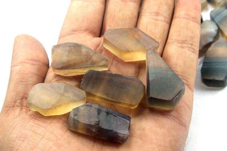 ชุดหินฟลูออไรต์ธรรมชาติคุณภาพสูง 5 ชิ้น ขนาด 30-35 มม. พร้อมเอฟเฟกต์รูปดาว ตัดด้วยมือ สำหรับทำเครื่องประดับอัญมณีแบบไม่เจียระไน
