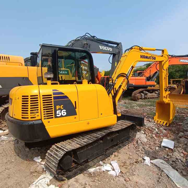 เครื่องขุด PC56ไฮดรอลิกขนาดเล็ก5ตันมือสอง Komatsu เครื่องยนต์คัมมินมอเตอร์2021รุ่น0.2เมตร