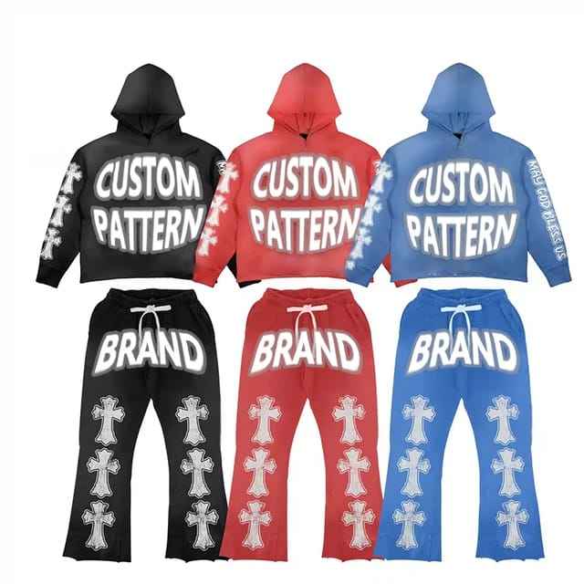 เสื้อมีฮู้ดแบบสวมหัวผ้าคอตตอนหนาสำหรับผู้ชาย500 GSM ปักลายขนแกะโอเวอร์ไซส์เปิดไหล่สำหรับฤดูหนาว