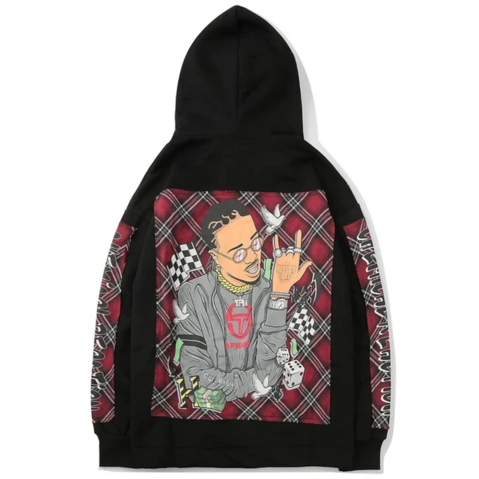 เสื้อฮู้ดดี้ผ้าเฟรนช์เทอร์รี่เนื้อหนัก 500gsm คุณภาพสูง ระบายอากาศได้ดี ตกแต่งด้วยคริสตัล ทรงหลวมไหล่ตก ไม่มีเชือกผูก ขนาดใหญ่พิเศษ